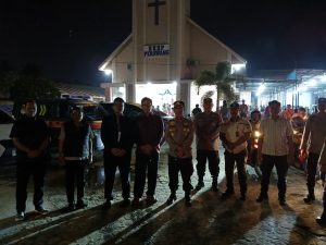 TUALANG, siaganews.id — Kapolsek Tualang Kompol Teguh Wiyono, S.H., M.H. bersama unsur Upika Kecamatan Tualang turun langsung melakukan patroli dan pengecekan malam perayaan Natal, Rabu (24/12/2025) malam. Langkah ini dilakukan untuk memastikan seluruh rangkaian ibadah Natal berjalan aman, tertib, dan kondusif.