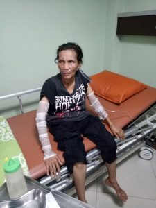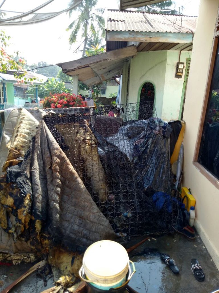 Baju yang ia kenakan sudah dijilat api. Api tersebut juga sudah menyambar spring bed yang nyaris menjadi kebakaran hebat. Beruntung korb