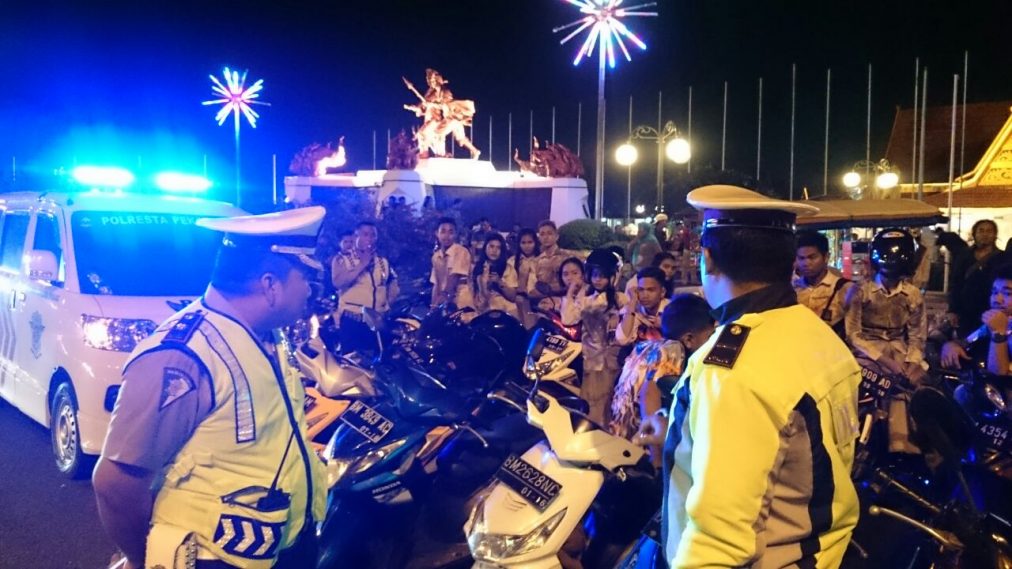 Patroli dari Satuan Lalu Lintas yang mendatangi pelajar tersebut sempat membuat para pelajar kocar kacir namun dengan cepat puluhan pelajar yang masih menggunakan seragam sekolah yang telah dicoret coret tersebut sudah terkepung. Tidak perlu waktu lama bagi kepolisian puluhan kendaraan yang terjaring langsung dilakukan tilang teguran dan edukasi di tempat oleh Polantas dan setelah di berikan edukasi serta penjelasan bahayanya ugal ugalan di jalan raya puluhan pelajar tersebut di persilahkan pulang ke rumah masing masing dengan tertib.