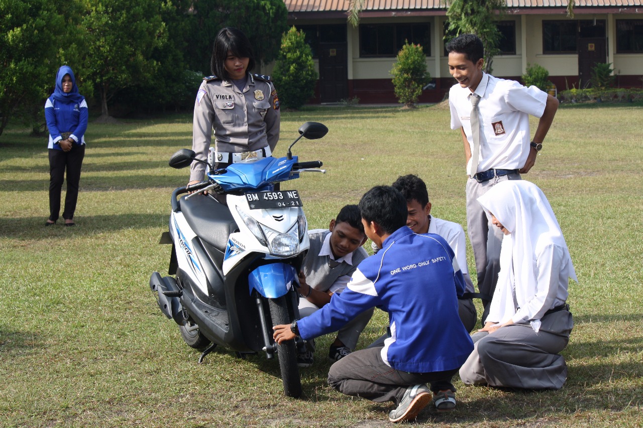 “Kita juga mengingatkan kepada siswa bahwa persyaratan awal berkendara adalah harus memiliki SIM. Bagi siswa yang sudah memiliki KTP dan memenuhi syarat, wajib memiliki SIM untuk berkendara”, ujar Ratna.