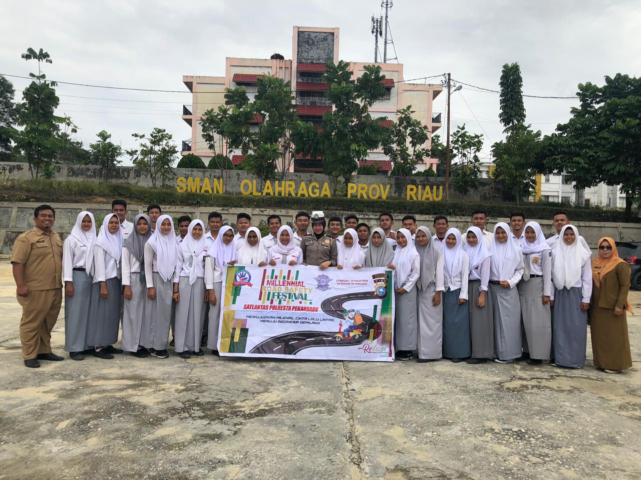 PEKANBARU, SIAGANEWS.CO – Satuan Lalu Lintas Polresta Pekanbaru kunjungi SMA Negeri Olah Raga Provinsi Riau, Jalan Yos Sudarso, Senin (11/2/2019)