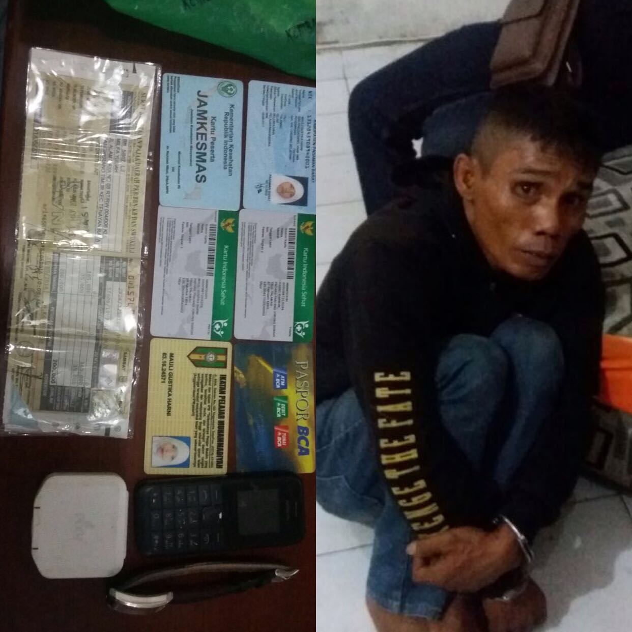J alias Jai ditangkap dengan barang bukti sebilah pisau, berbagai kartu identitas, sepeda motor serta satu unit handphone.