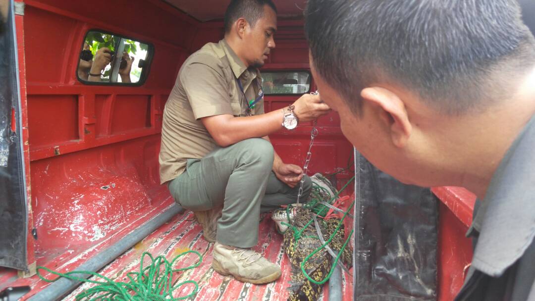 Pihak Balai Besar KSDA Riau yang tiba di lokasi langsung mengevakuasi buaya tersebut. Humas Balai Besar KSDA Riau, Dian Indriati mengatakan buaya tersebut sementara akan diselamatkan.