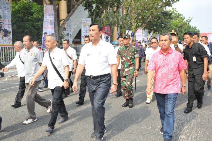 PEKANBARU, SIAGANEWS.CO – Menteri Koordinator Kemaritiman Indonesia, Luhut Binsar Panjaitan mengikuti jalan sehat yang bertemakan ‘melawan hoax dan fitnah di bumi lancang kuning’, Ahad (3/2/19).