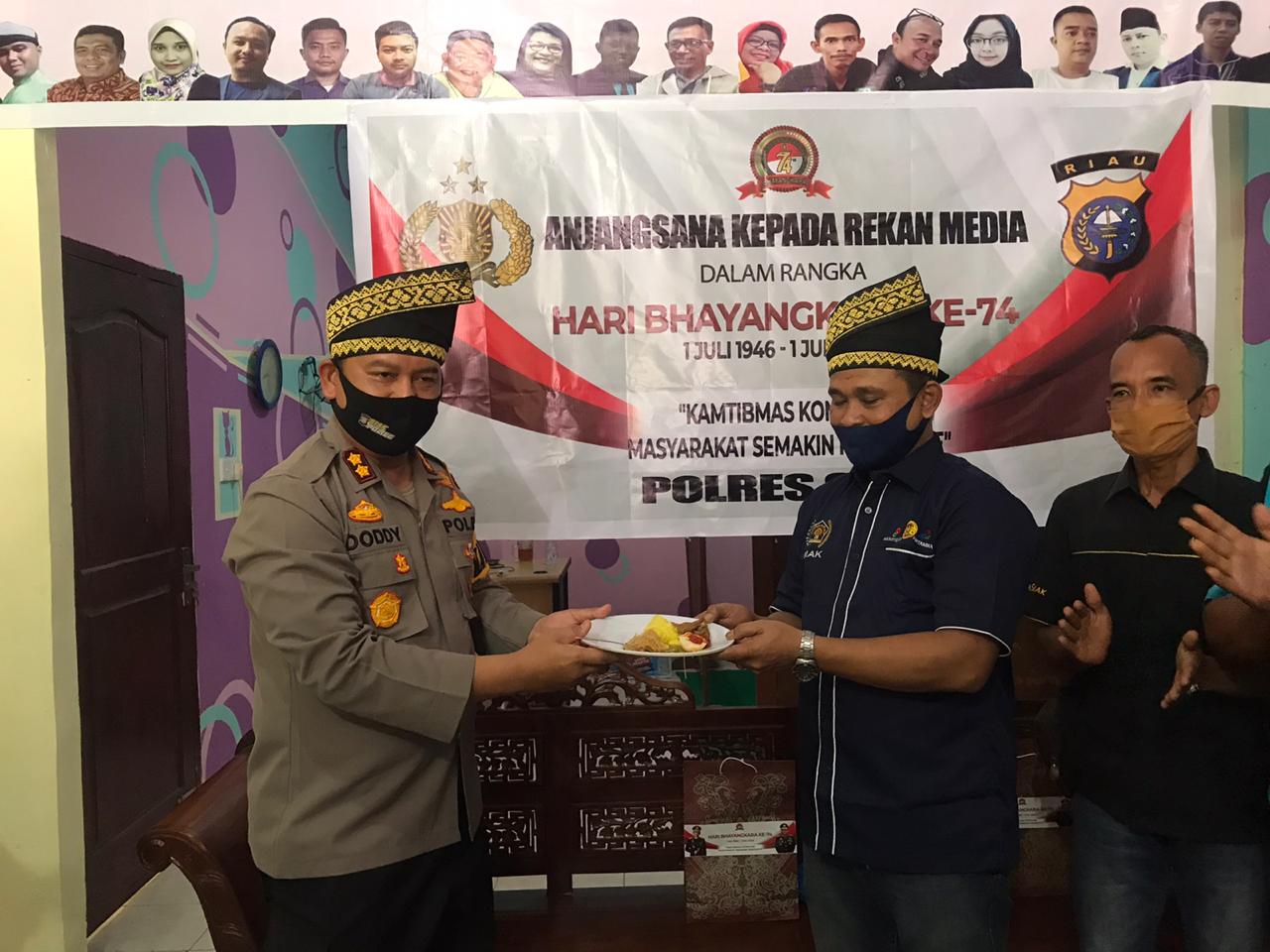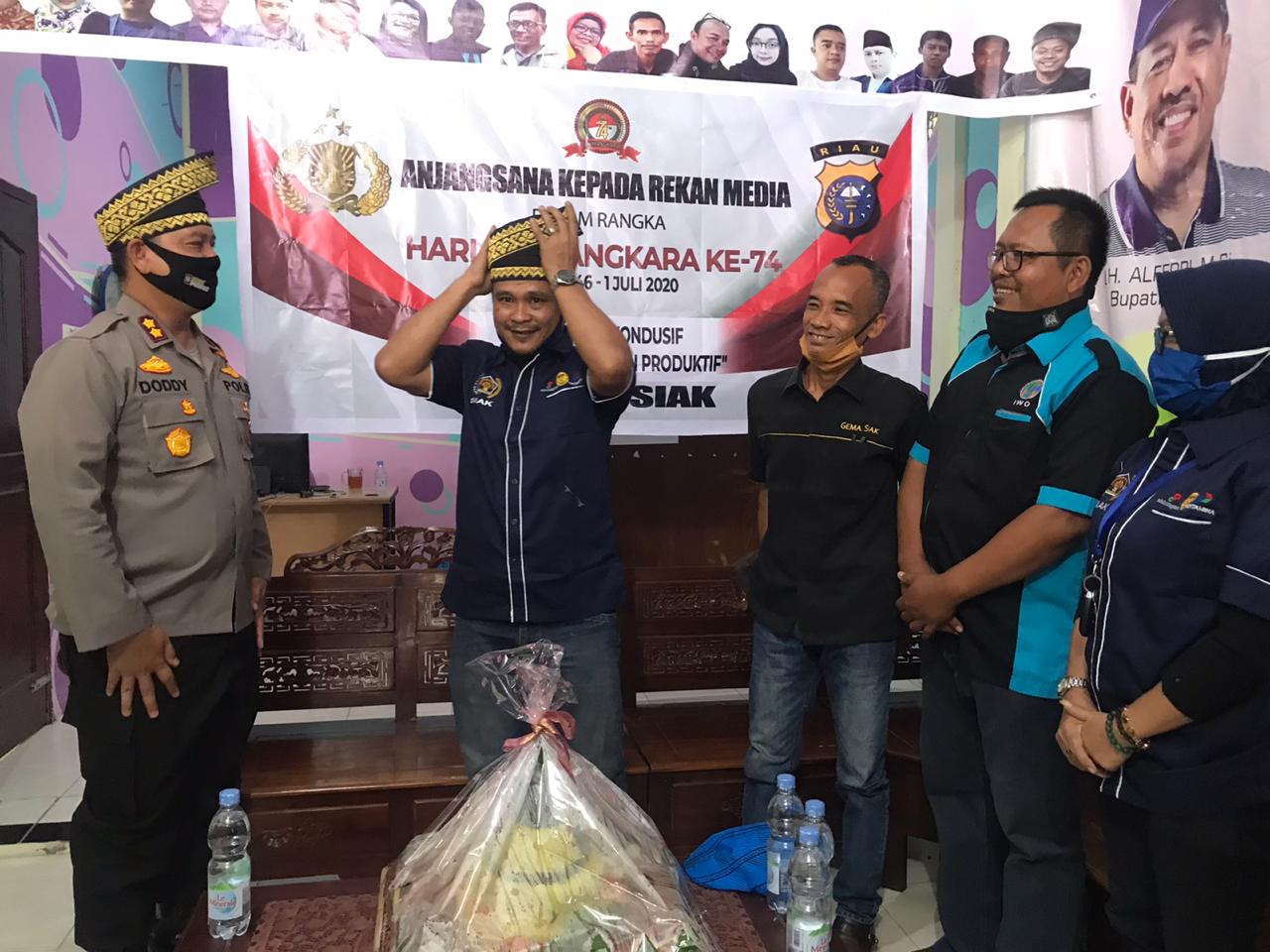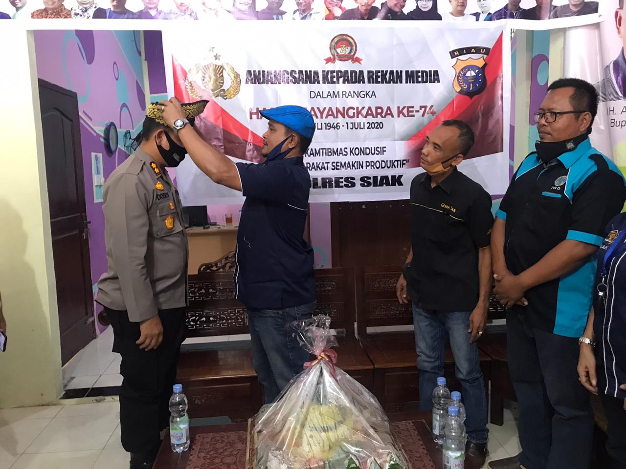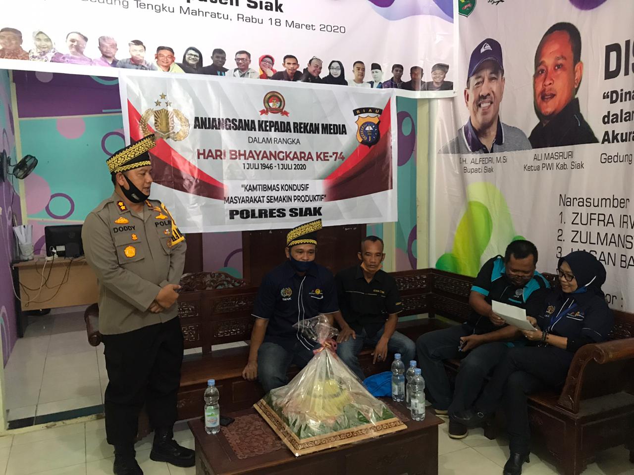 Siak – Dalam rangka memperingati Hari Bhayangkara ke-74, Jumat (19/6/20) pagi, Polres Siak melakukan silaturahmi dalam bentuk tali asih dengan insan pers Kabupaten Siak, silaturahmi itu dilaksanakan di kantor Persatuan Wartawan Indonesia (PWI) Siak Jl.Hangtuah depan LAM Siak.