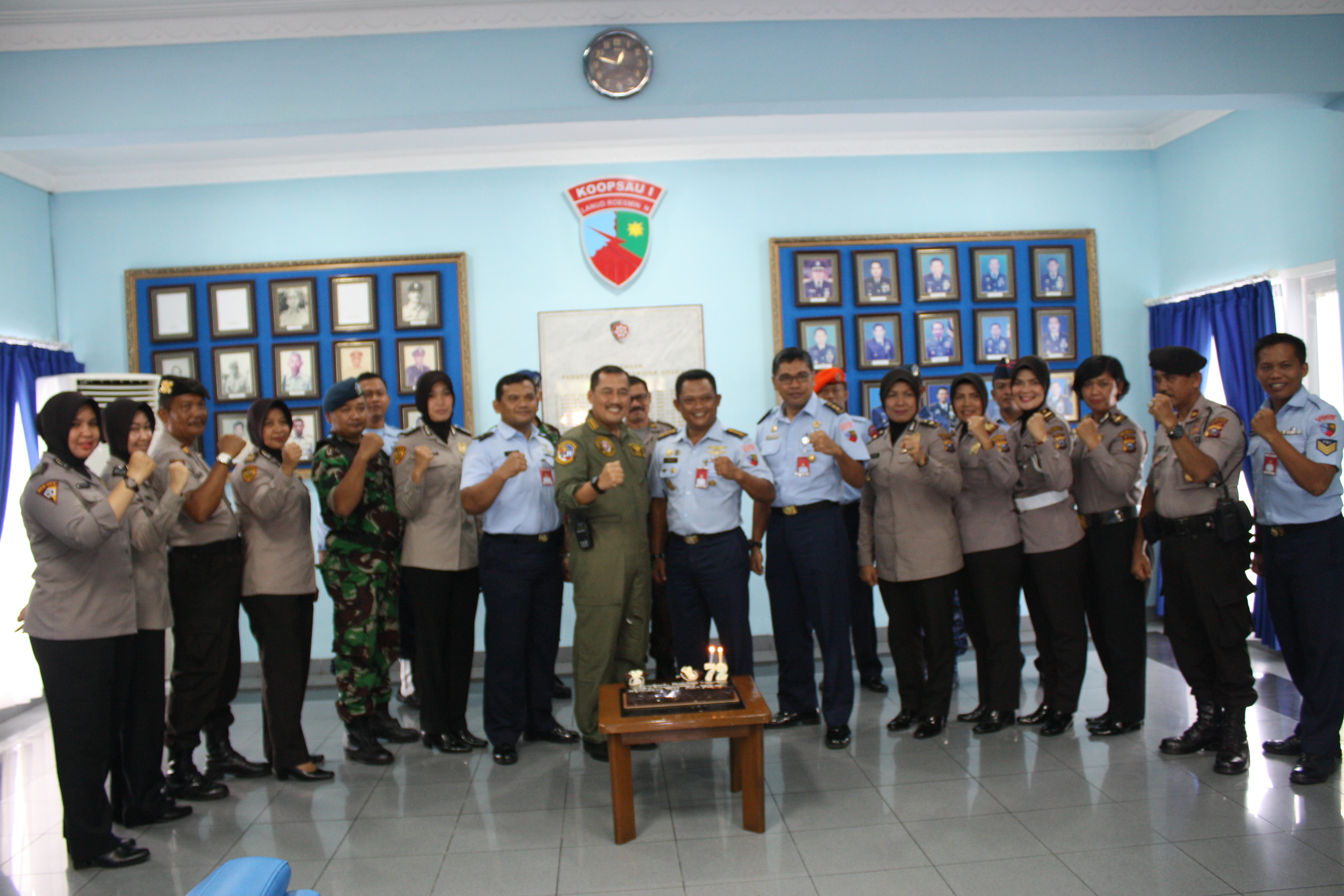 Dalam sambutannya Danwing 6, yang mewakili Danlanud serta warga Lanud Roesmin Nurjadin mengucapkan terima kasih atas kunjungan dan perhatian dari Polresta Pekanbaru yang telah berkunjung silaturahmi dalam rangka HUT TNI ke-72. Dihadiri oleh beberapa pejabat lanud lainnya, usai penyerahan kue ulang tahun, para abdi negara tersebut lalu berfoto bersama.