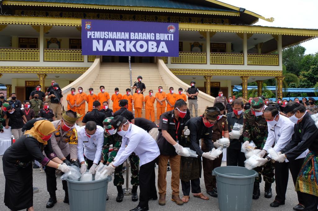 – Berharap pemusnahan ini agar diketahui seluruh masyarakat riau. Seluruh elemen harus bekerja sama untuk memusnahkan narkotika