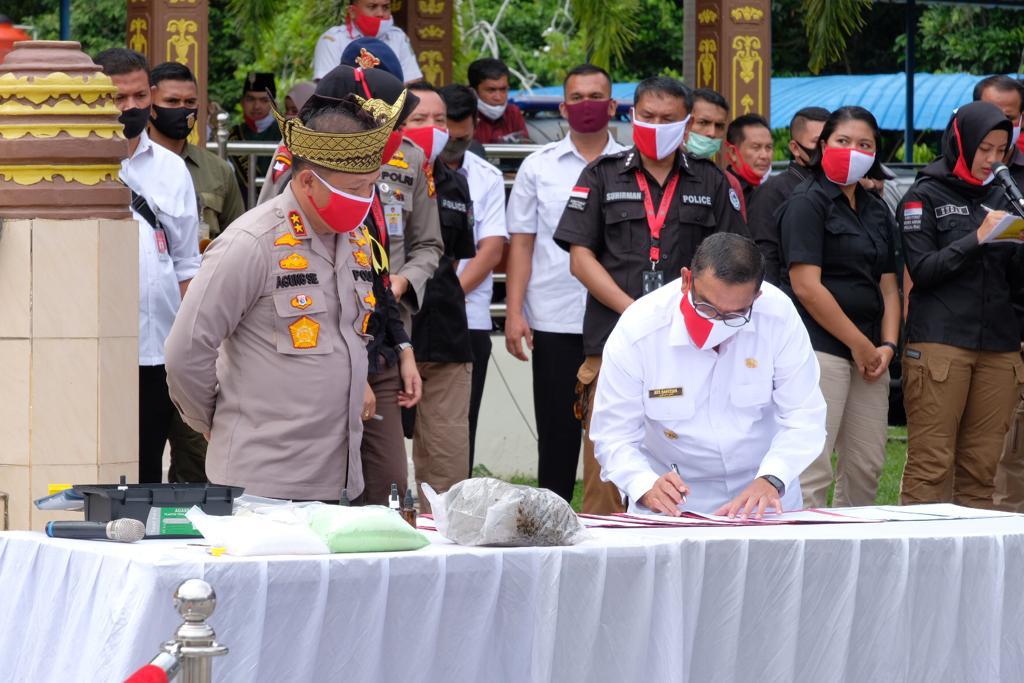 – Kami menyambut baik terselenggaranya pemusnahan barang bukti Narkoba ini di halman kantor lam