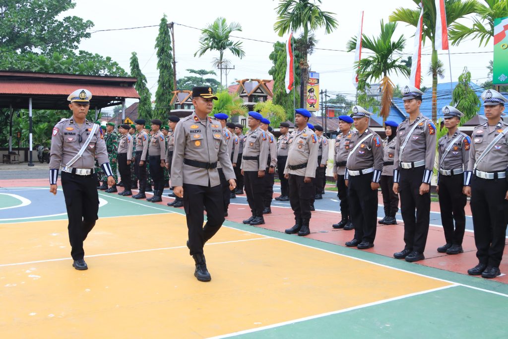 Apel gelar pasukan dimulai pada pukul 08.00 WIB dan dipimpin langsung oleh Wakapolres Indragiri Hilir, KOMPOL Rizki Hidayat, S.E., S.I.K., M.H. selaku Pimpinan Apel, dengan AKP Fandri, S.H. (Kasat Lantas) sebagai Perwira Apel, serta IPDA Riki Fadilah, S.H., M.H. sebagai Komandan Apel.