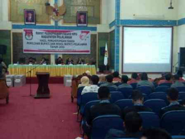 Hal tersebut diketahui setelah, KPU Pelalawan, menuntaskan, rapat pleno rekapitulasi terhadap hasil perhitungan suara pemilihan bupati dan wakil bupati Pelalawab tahun 2015, Rabu (16/12/15) yang diselenggarakan di Gedung Daerah Laksamana Mangku Diraja.