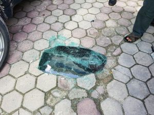 Korban Sholat tidak jauh dari lokasi parkir mobil. Usai melaksanakan Sholat, korban mendapati kaca bagian tengah sebelah kiri sudah pecah.