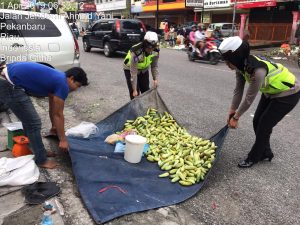 Kasat Lantas Polresta Pekanbaru Kompol Rinaldo Aser, SH, SIK, MSi, melalui Kasubnit I Unit Dikyasa Ipda Ratna Wilis mengatakan penling dilakukan untuk mengimbau dan mengingatkan pedagang pasar tumpah.
