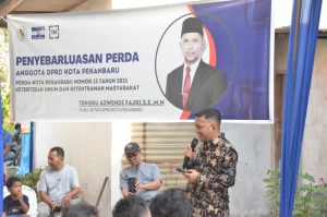 Siaganews.id – PEKANBARU – Wakil Ketua DPRD Pekanbaru Tengku Azwendi Fajri menyelenggarakan Penyebarluasan Perda di Jalan Kusuma Kelurahan Simpang Tiga Kecamatan Bukit Raya pada Kamis (27/11). Agenda ini dihadiri segenap masyarakat setempat beserta perangkat RT RW.