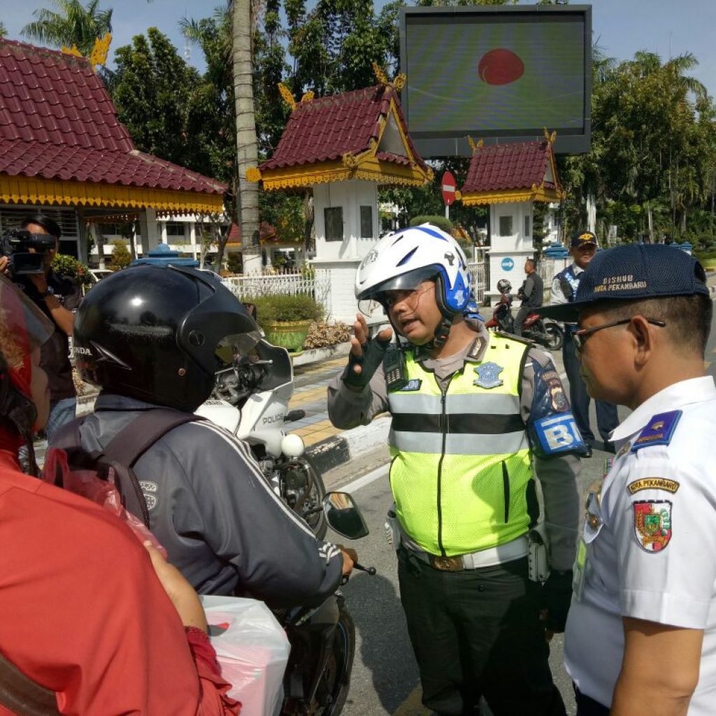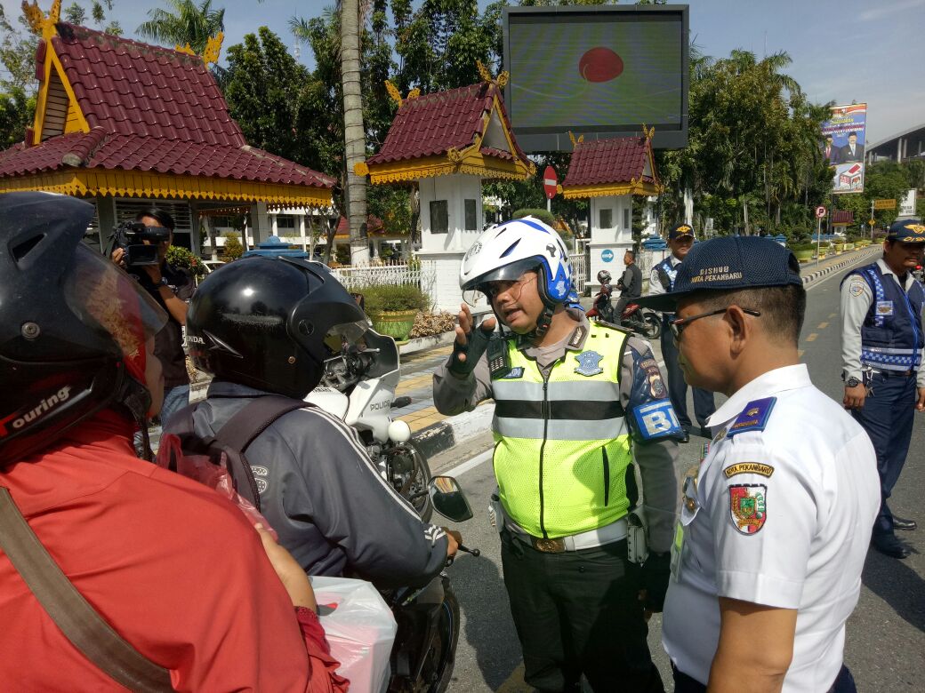 Puluhan kendaraan yang melintasi fly over dilakukan penertiban oleh personil gabungan dari Satuan Lalu Lintas Polresta Pekanbaru bersama Dishubkominfo Kota Pekanbaru. Selain memberikan tilang teguran kepada pelanggar petugas juga memberikan pemahaman dan himbauan agar pengendara sepeda motor tidak melintasi Fly Over karena rambu larangan bagi sepeda motor melalui fly over sudah terpasang.