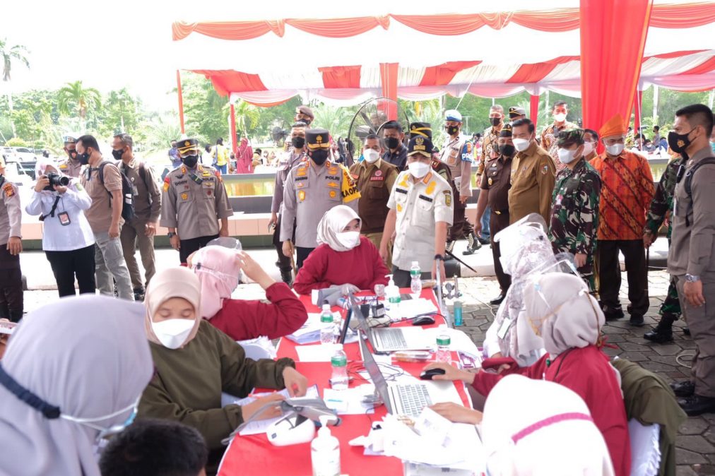 Vaksin yang dilangsungkan hari ini, diantaranya di Masjid Raya Agung Annur di Kota Pekanbaru. Di sini ada 2.000 dosis disediakan. Warga pun sudah antre dengan tertib sejak pagi. Proses vaksinasi di sana ditinjau langsung Gubernur Syamsuar, Kapolda Irjen Agung Setya Imam Effendi, Danrem 031 Wirabima Brigjen M Syeich Ismed, Kajati Riau, DPRD Kota dan Provinsi serta Walikota Pekanbaru dan Kapolresta.