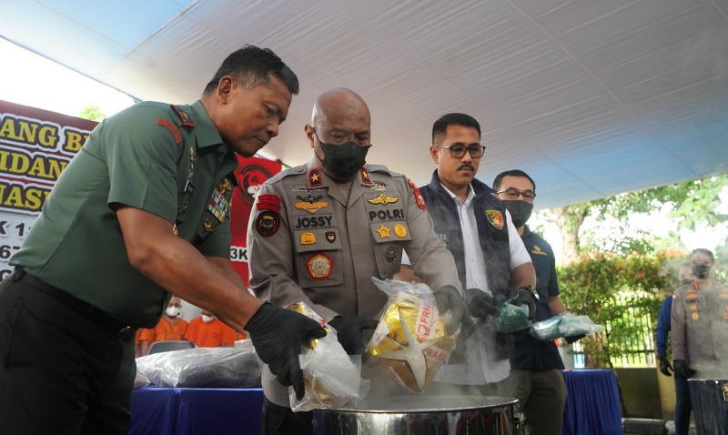 Dalam kegiatan pemusnahan barang bukti narkotika yang digelar hari ini, Polda Riau memusnahkan Barang Bukti Narkoba terdiri dari sabu seberat 119,7 kg, heroin 3,87 kg, ekstasi sebanyak 43.674 butir, dan ganja seberat 16 kg.