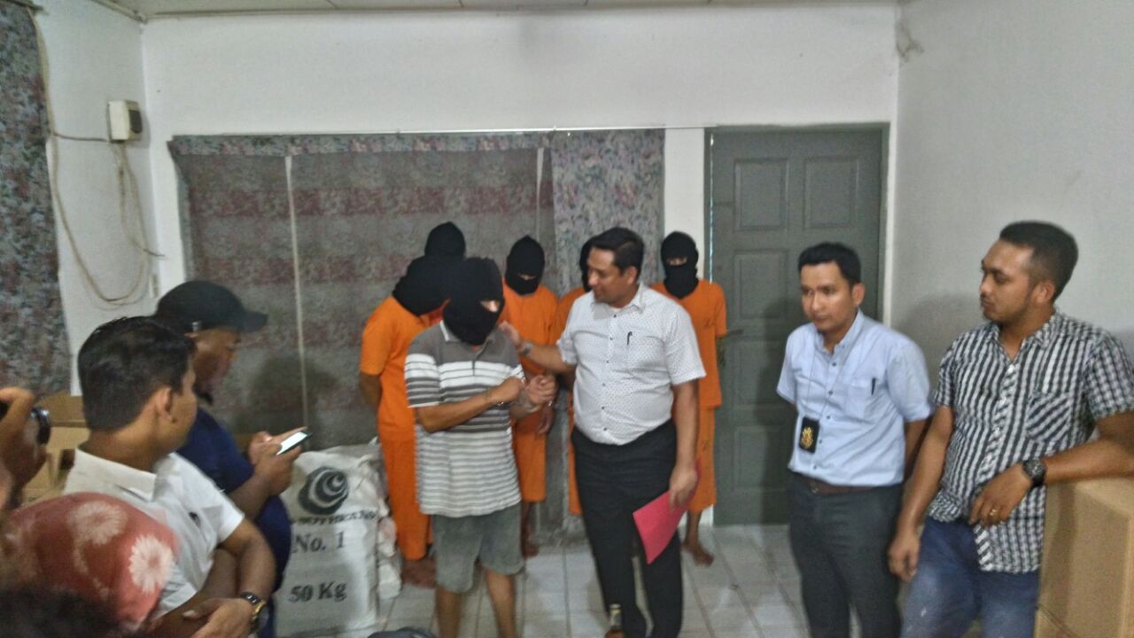 Lima orang diamankan dari lokasi yang merupakan para pekerja. Dari lokasi Polisi mendapati barang bukti yang ditemukan Polisi dari penggrebekan tersebut, miras Asoka Wisky 43 kotak, Big Boss biasa 54 kotak, Big Bos Putih 28 kotak, Anggur Merah botol besar 474 kotak, Anggur merah botol kecil 67 kotak, Mansion Putih 26 kotak, Mansion biasa 21 kotak.
