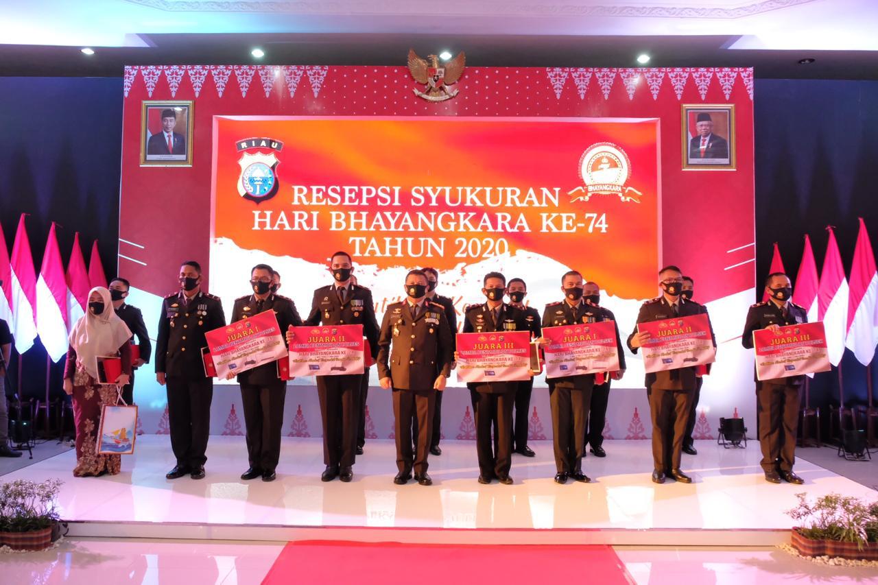 Brigjen TNI Muh Syech Ismed SE MHan, Danlanud RSN Marsma Ronny Irianto Moningka, Danlanal Dumai Kolonel Laut (P) Himawan, Wakil Ketua DPRD Provinsi, Kakanwil Kemenkumham diwakili oleh Kalapas Pekanbaru, Ketua Pengadilan Tinggi Riau,Wakapolda, para PJU, Ketua serta Pengurus Bhayangkari Daerah Riau tersebut Irjen Agung memberikan beberapa penghargaan terhadap pemenang lomba Polres dan Polsek terbaik, anggota Polri berprestasi serta bagi anggota Polri teladan.