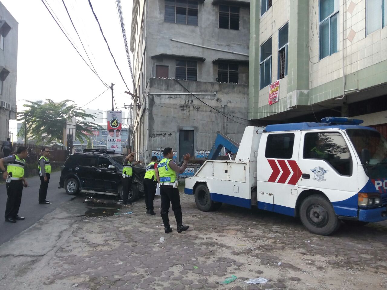 PEKANBARU, SIAGANEWS.CO – Satu unit mobil pribadi yang diduga mengalami out of control diamankan Satuan Lalu Lintas Polresta Pekanbaru Selasa (17/1) pagi. Saat ini mobil tersebut telah diamankan dengan menggunakan mobil Derek milik Sat Lintas.
