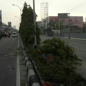 Mobil tersebut diduga mengalami out of control dan menabrak tiang lampu penerangan jalan Tuanku Tambusai tepatnya di depan pertokoan sekitar Mall Giant Tambusai.