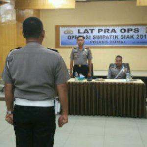 SIAGANEWS.CO – Satuan Lalu Lintas (Sat Lantas) Kepolisian Resor (Polres) Dumai mengadakan Latihan Pra Operasi Simpatik Siak tahun 2017, Senin (27/02/2017) pagi sekira pukul 08.00 WIB di Gedung Citra Waspada Mapolres Dumai Jalan Jendral Sudirman No. 01 Kelurahan Teluk Binjai Kecamatan Dumai Timur.