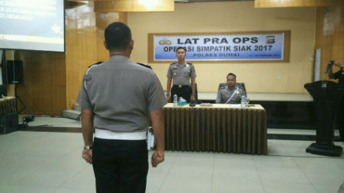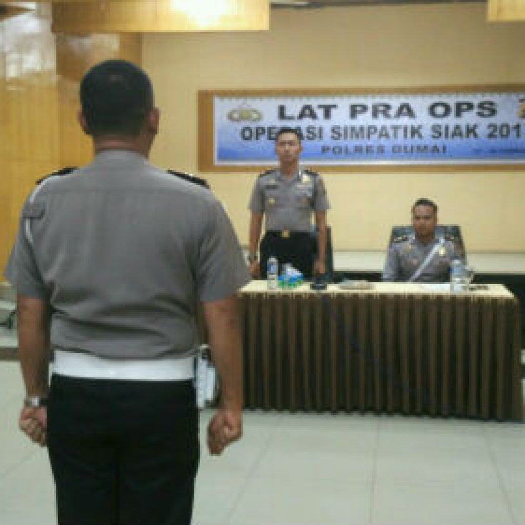 Pembukaan Latihan Pra Operasi Simpatik Siak 2017 tersebut ditandai dengan Pemasangan Tanda Peserta Operasi Simpatik Siak 2017 dan dilanjutkan dengan Pemberian Materi oleh sejumlah Instruktur diantaranya ialah Kabag Ops Polres Dumai Kompol Sasli Rais SH, Kasat Lantas Polres Dumai AKP Emil Eka Putra SH SIK, KBO Sat Lantas Polres Dumai IPTU Nurahim SIK, Kasi Propam Polres Dumai IPTU Amozi Zega dan sejumlah Instruktur lainnya.