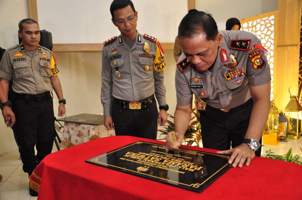 Kapolda Riau Irjen Wododo juga menandatangani prasasti gedung SPKT dan MPP Parama Satwika bersama pihak perusahaan swasta.