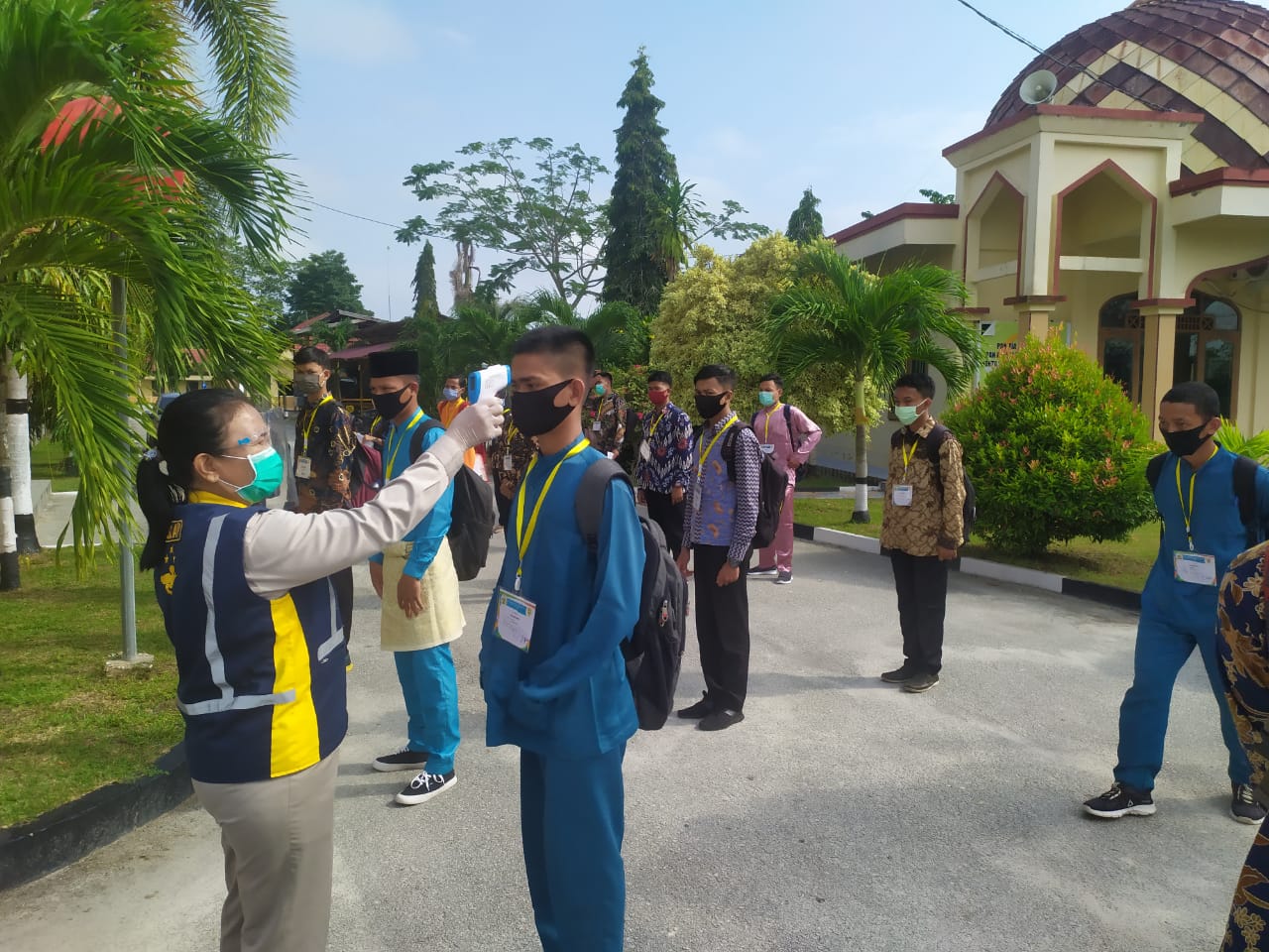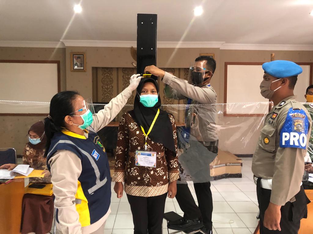 ” Sebanyak 194 calon siswa bintara Polri akan kita lakukan pemeriksaan administrasi awal di Polres Siak selama 4 hari, tentunya dengan tetap menerapkan protokol kesehatan pencegahan penyebaran Covid – 19 seperti setiap calon siswa diwajibkan mencuci tangan dengan sabun yang telah disiapkan, memasuki bilik sterilisasi, menggunakan masker dan tetap menjaga jarak.” Ucap Dedek.