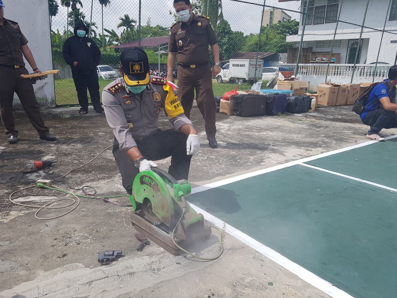 Untuk Barang bukti Senjata api rakitan dimusnahkan dengan cara di potong dengan mesin pemotong hingga menjadi bagian kecil. Tidak semua senpi itu dapat dimusnahkan sendiri oleh Kejari Pekanbaru. Masih ada beberapa senpi dan proyektil yang akan dimusnahkan bersama dengan Brimob.