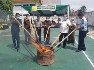 Pemusnahan barang bukti tindak pidana umum sebayak 761 perkara dengan rincian Barang Bukti Psikotropika dan Narkotika sebanyak 590 perkara barang bukti yang dimusnahkan Ganja sebanyak 822,86 gram, sabu sebanyak 178,69 gram dan Pil Ekstasi sebanyak 122 butir.