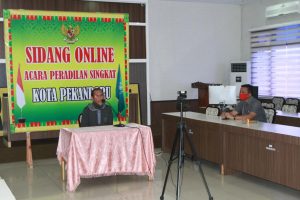 Pemeriksaan dilanjutkan untuk melengkapi pemberkasan guna pelaksanaan sidang Pelanggaran PSBB secara online di Polresta Pekanbaru, tepat hari rabu 29 April 2020 sidang dimulai jam 10.00 wib dengan menghadirkan semua petugas persidangn secar online.
