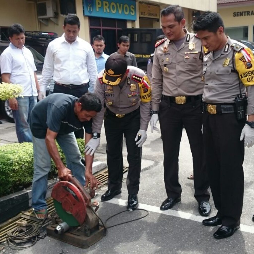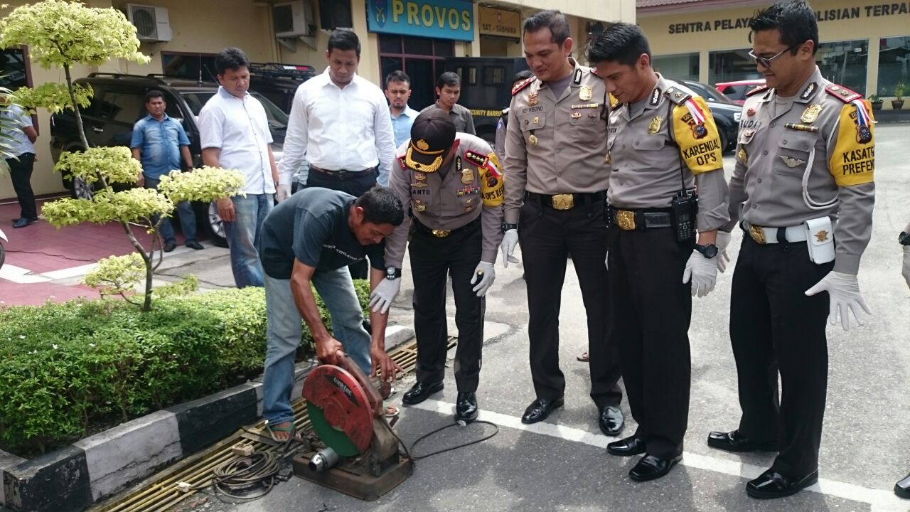Usai melakukan ekspose tersangka, Kapolresta memimpin pemusnahan barang bukti knalpot racing hasil pelaksanaan operasi cipta kondisi. Knalpot yang disita dari pengendara yang terjaring saat razia yang dilakukan oeh Sat Lantas Polresta Pekanbaru ini di potong menjadi beberapa bagian dengan mesin gerinda.(*)