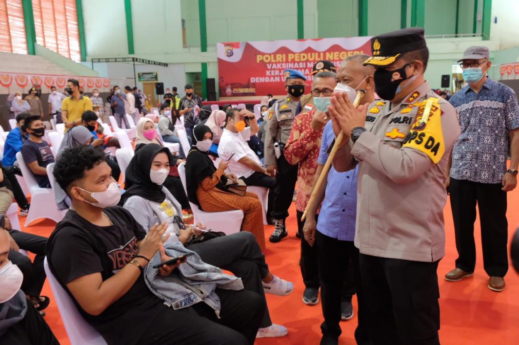 PEKANBARU – siaganews.id – Bertempat di gedung PKM UIR (Universitas Islam Riau) Jl Kaharuddin Nasution Simpang Tiga Pekanbaru pada Sabtu (31/7/2021), Polda Riau bersama UIR menggelar kegiatan vaksinasi bagi mahasiswa dan civitas akademi. Acara yang dihadiri Kapolda Riau Irjen Agung Setia bersama Rektor UIR Prof Syafrinaldi tersebut menyiapkan sebanyak 600 dosis vaksin bagi mahasiswa. Selain itu juga digelar pemberian bantuan sosial sebanyak 400 paket sembako yang diserahkan Kapolda kepada masyarakat sekitar kampus.