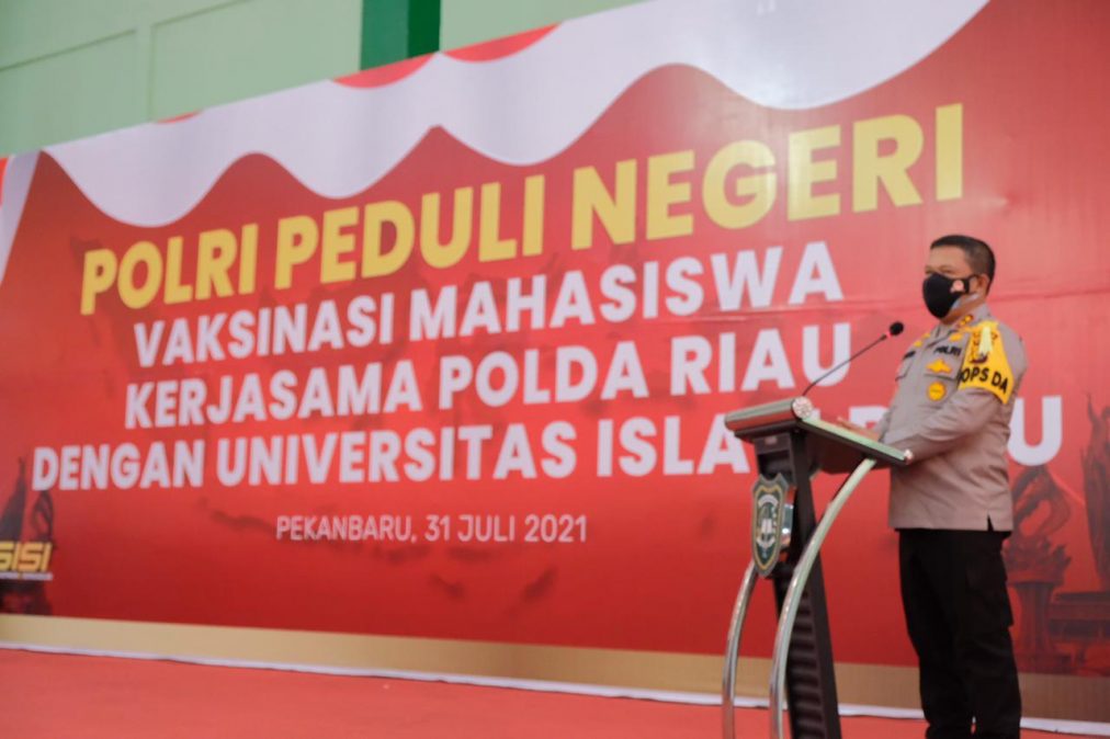 Kapolda Riau dalam sambutannya mengatakan pihak Polda Riau ingin memulai sesutu ang dinilainya sangat penting yaitu vaksinasi bagi generasi muda terutama para menerus bangsa. Vaksinasi kampus menjadi langkah awal untuk menyiapkan kondisi prima sehingga akan mampu bersaing diwaktu yang akan datang.