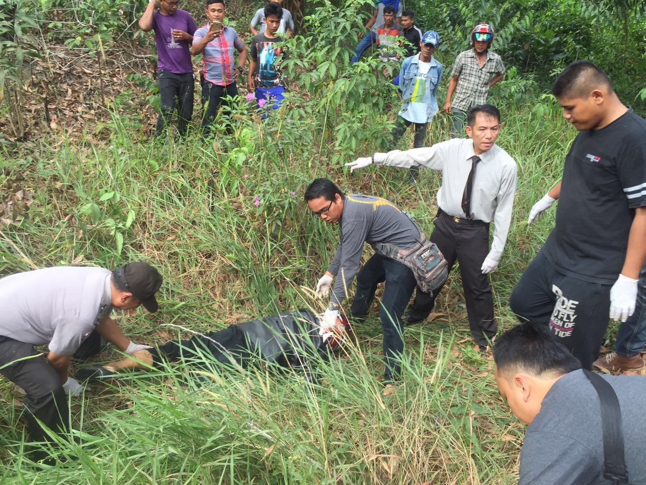 Dari informasi yang diterima Siaganews.co, kedua saksi melintas di lokasi saat akan pergi menjalankan aktifitasnya. Keduanya berhenti karena melihat sesosok jasad manusia. Penasaran, keduanya kemudian memastikannya dengan mendekat ke lokasi. Benar saja, mereka menemukan sesosok manusia yang masih mengenakan helm dan berjaket warna hitam. Temuan tersebut kemudian dilaporkan ke Polsek Rumbai.