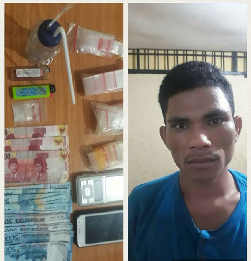 Dari informasi yang diterima dari kepolisian, dari tangan polisi disita sebanyak empat paket sabu.