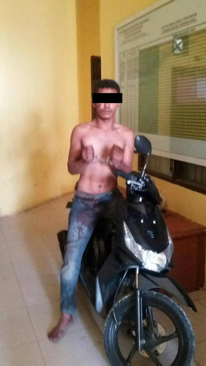 ” Tersangka berhasil kita temukan disekitar semak belukar dekat perumahan warga, bersama tersangka turut diamankan satu unit sepeda motor diduga hasil aksi pelaku dan sebagai barang bukti , ” Jelas Kapolsek.