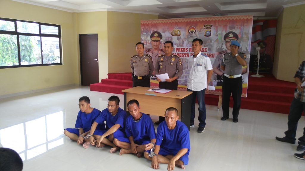 PEKANBARU, SIAGANEWS.CO – Sindikat pencurian dengan kekerasan (curas) kendaraan bermotor yang berhasil diungkap Polsek Tenayan Raya, Polresta Pekanbaru ini merupakan penjahat lintas provinsi. Kejahatan kawanan ini menyebar ke beberapa provinsi di wilayah Indonesia. Hal tersebut disampaikan Wakapolresta Pekanbaru disela-sela ekspose tersangka di Mapolresta Pekanbaru, Rabu (26/7/2017) siang.