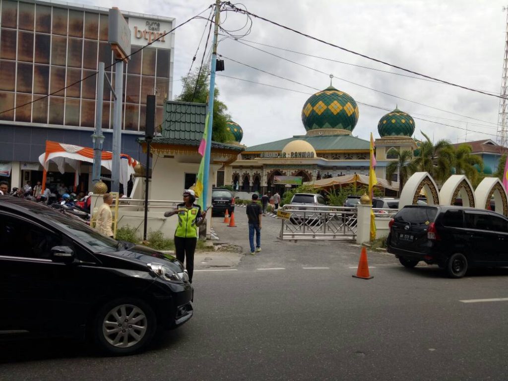 Salah satu titik fokus pengaturan tersebut terlihat di ruas jalan depan pintu masuk Mesjid Ar-Rahman, di Jalan Sudirman, Pekanbaru. Beberapa polwan tampak memberikan arahan guna mengatur arus lalu lintas serta membantu jamaah yang akan menyeberang menuju mesjid. Selain mengatur arus lalu lintas, Polwan juga terlihat membantu para jamaah yang akan memarkirkan kendaraanya, dengan mengatur kendaraan yang diparkir.