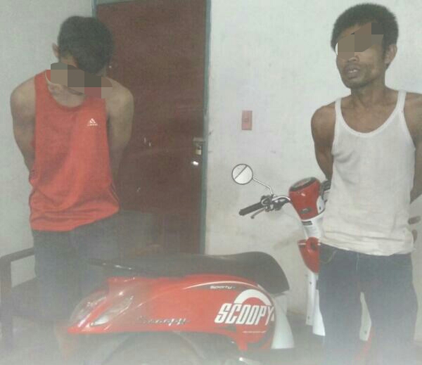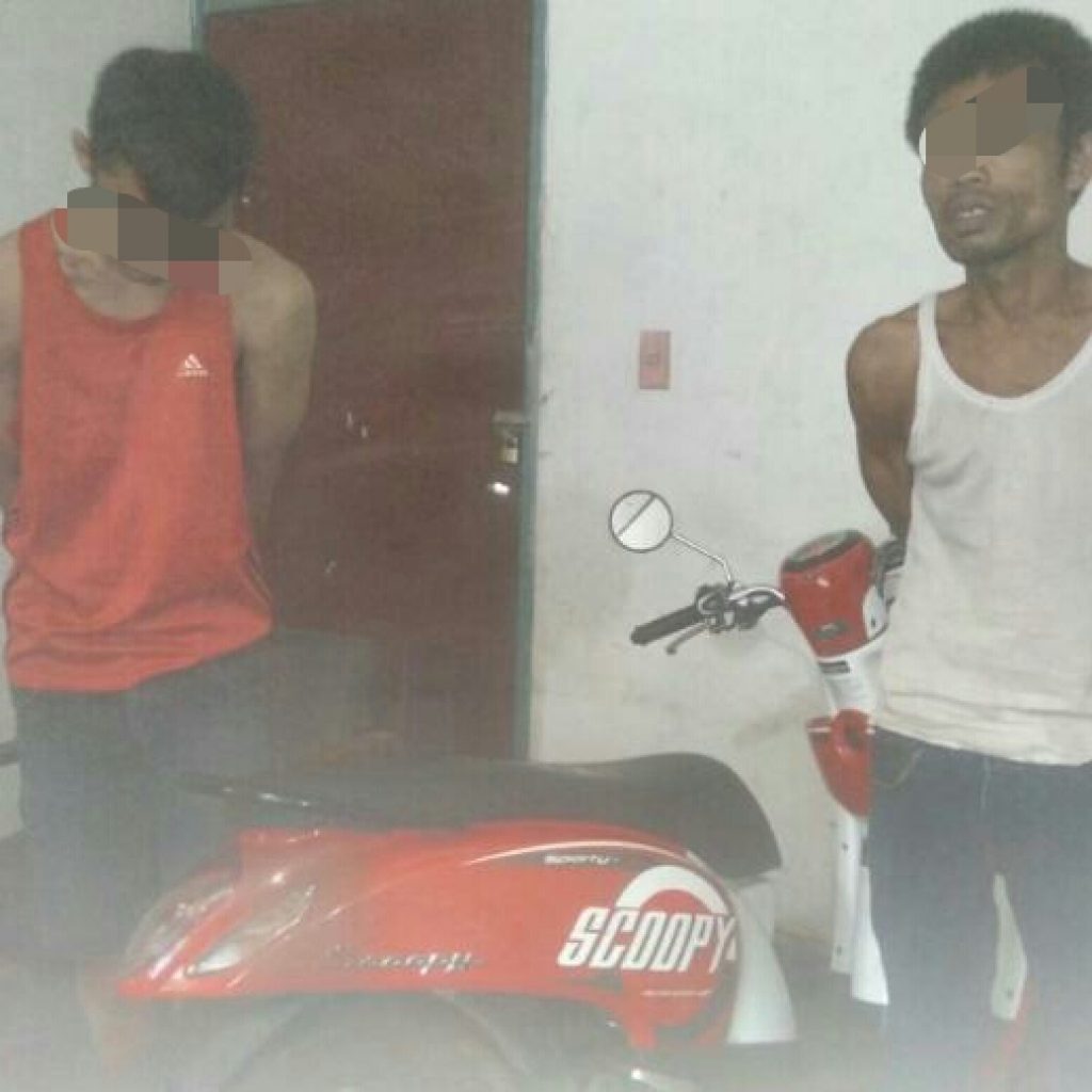 Dua orang pelaku diamankan ditempat yang terpisah. Awalnya polisi meringkus DP (20) yang melakukan pencurian sepeda motor. Kemudian hasil pengembangan polisi mengamankan BF (33) penadah motor hasil curian.