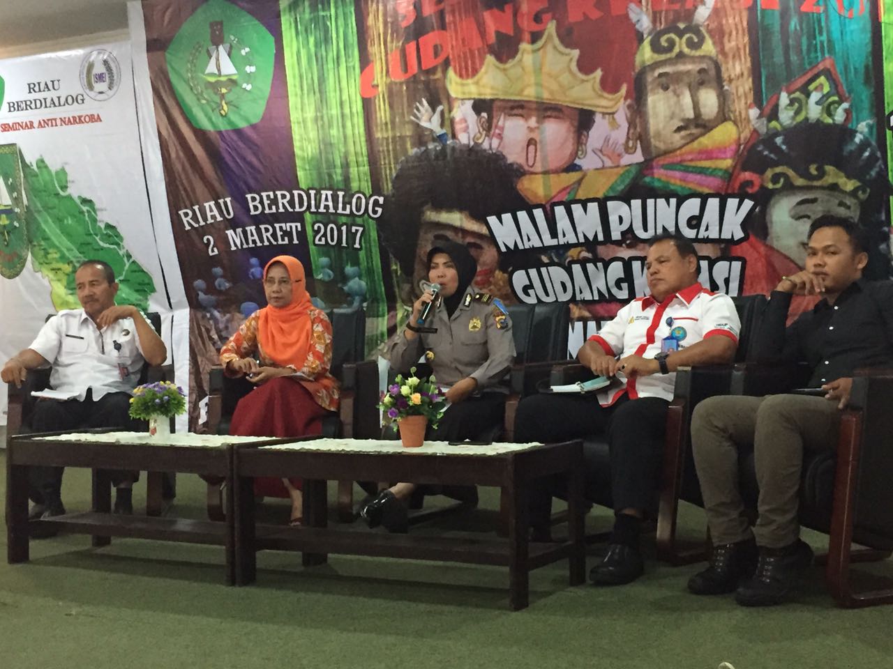Acara dialog tersebut dibuka oleh Kapolda Riau Irjend Pol Zulkarnain Adinegara serta dihadiri oleh Kabid Pemberantasan BNN Provinsi Riau, Kepala BNN Kota Pekanbaru serta yang mewakili Kapolresta Pekanbaru yakni Kasat Binmas Polresta Pekanbaru AKP Sunarti.