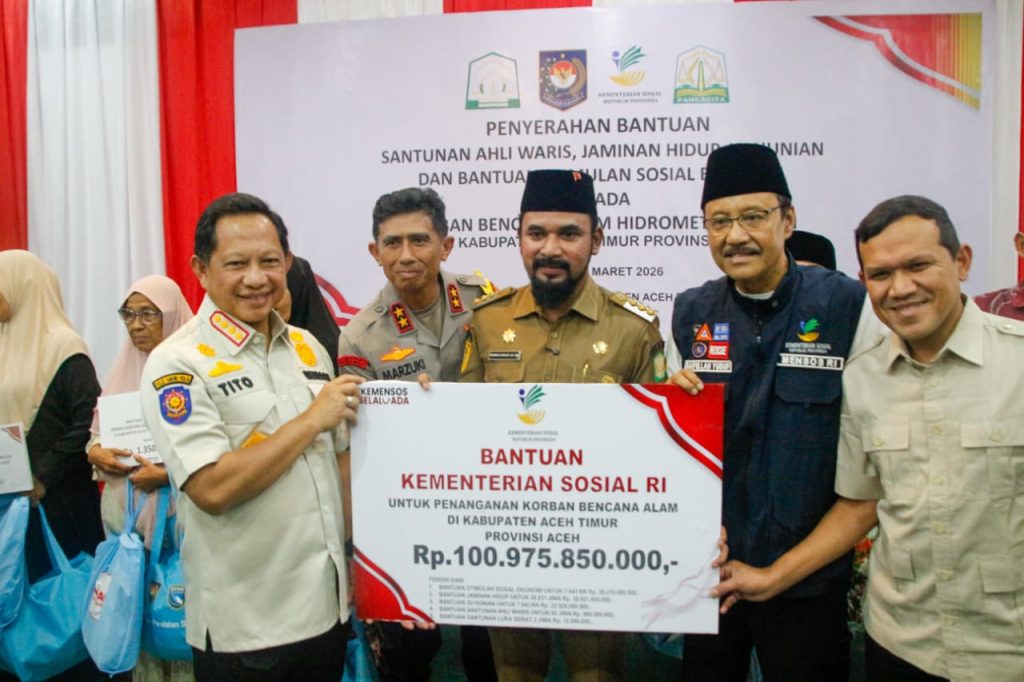 Aceh Timur, siaganews.id – Rilis Pers Satgas PRR,Senin, 16 Maret 2026. Menteri Dalam Negeri (Mendagri) sekaligus Ketua Satuan Tugas (Kasatgas) Percepatan Rehabilitasi dan Rekonstruksi (PRR) Pascabencana Sumatera Muhammad Tito Karnavian bersama Menteri Sosial (Mensos) Saifullah Yusuf menyerahkan bantuan sosial (bansos) bagi korban bencana di Provinsi Aceh, Sumatera Utara (Sumut), dan Sumatera Barat (Sumbar). Seremoni penyerahan bantuan berlangsung secara hybrid dari Pendopo Bupati Aceh Timur, Aceh, Senin (16/3/2026).