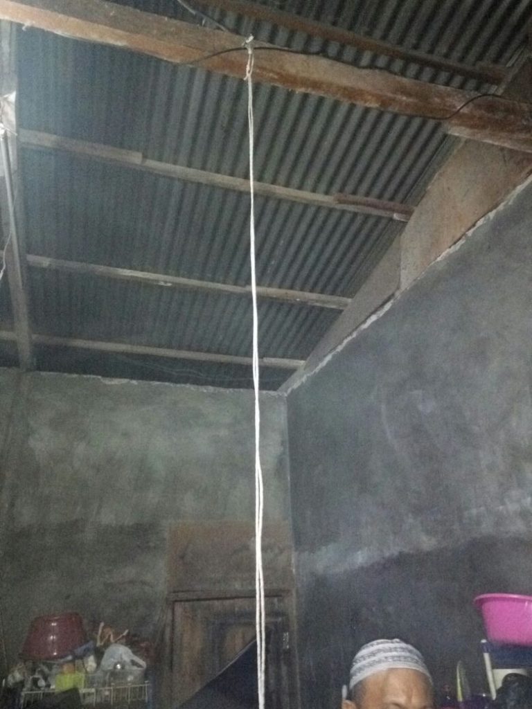 Saat ditemukan posisi jasad korban tergantung dengan tali yang diikatkan diatas kayu plafon.