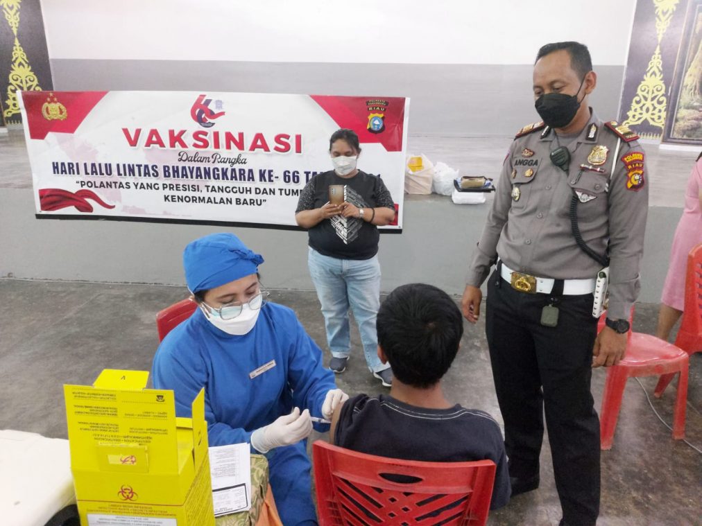 ‘dalam rangka menyambut Hari Lalu Lintas Bhayangkara ke-66 di Kota Pekanbaru, Satlantas Polresta Pekanbaru melaksanakan Vaksinasi bagi pelajar, hal ini kita lakukan sebagai salah satu bentuk dukungan kita percepatan Vaksin kepada pelajar sehingga nantinya diharapkan para siswa bisa melaksanakan pembelajaran tatap muka dan juga menekan angka penyebaran Virus Covid-19 khususnya di Kota Pekanbaru”