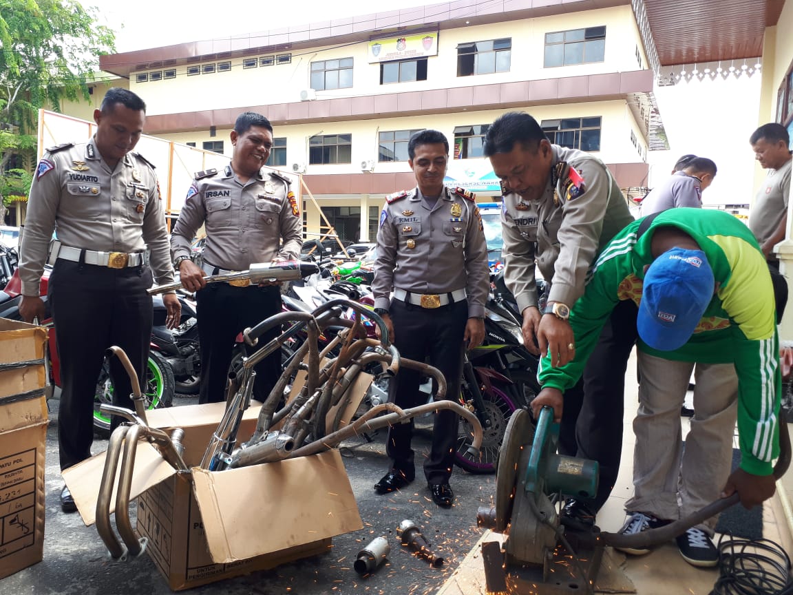 Pada saat dilakukannya pemusnahan, tampak beberapa masyarakat yang ada saat itu ikut menyaksikan proses pemusnahan. Adapun pemusnahan dilakukan dengan cara memotong knalpot dengan menggunakan alat khusus pemotong besi (Gerinda).