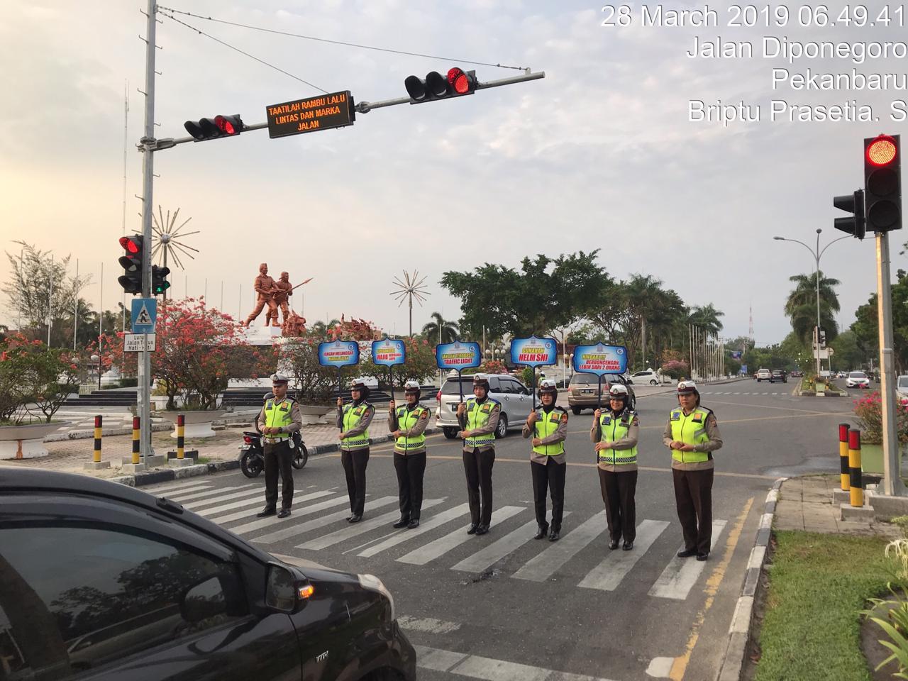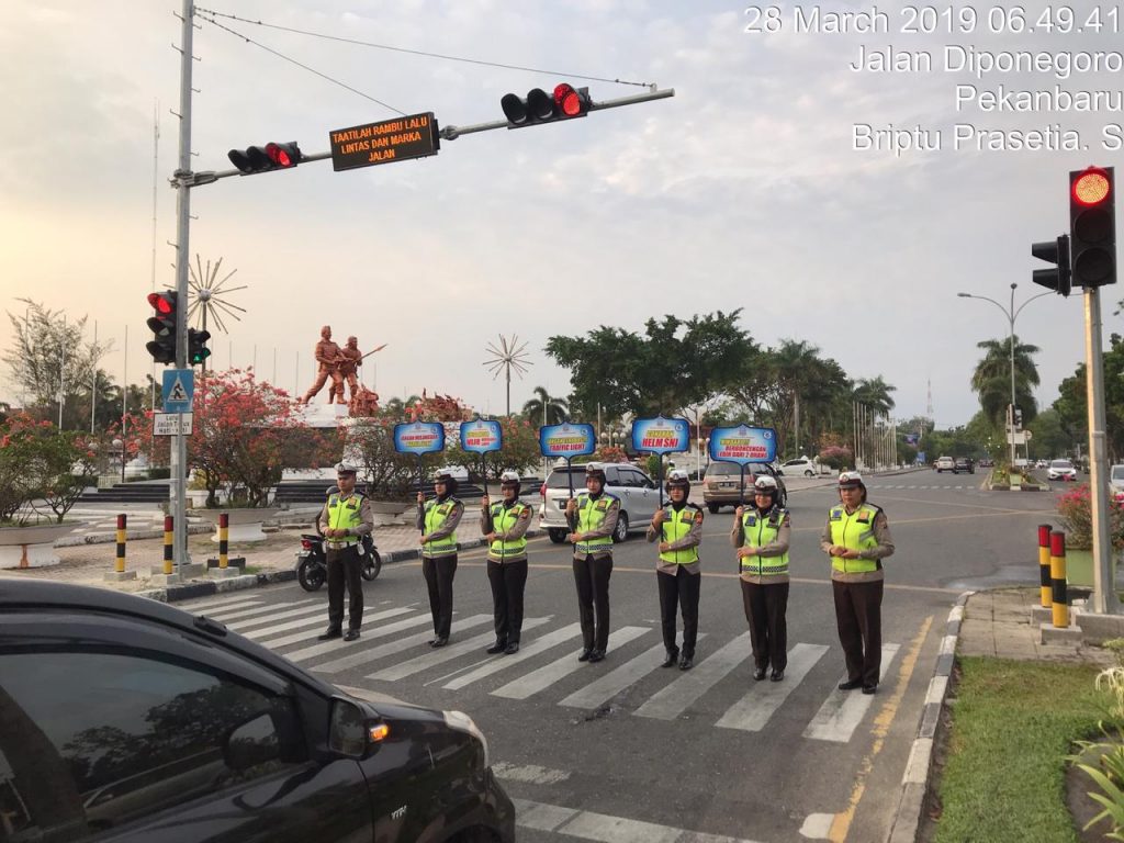 Kasat Lantas Polresta Pekanbaru Kompol Rinaldo Aser, SH, SIK, M.Si melalui Kasubnit I Unit Dikyasa Ipda Ratna Wilis mengatakan imbauan dilakukan mulai Pukul 06.30 wib, hal ini dilakukan untuk mengingatkan pengendara agar selama berkendara selalu tertib berlalu lintas.