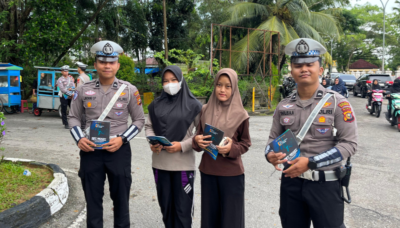 Kegiatan ini dipimpin langsung oleh Kasat Lantas Polres Inhil, AKP Fandri, S.H., bersama sejumlah personel Satlantas, termasuk Ipda Mia Leoni, S.Sos., Aipda Purwo Nugroho, Aipda Arani Okritama, S.H., serta anggota lainnya.