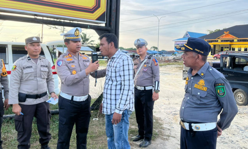 SiagaNews – Satlantas Polres Rokan Hilir melaksanakan kegiatan pemeriksaan kesehatan gratis, tes kadar alkohol, tes urine, serta ramp check kendaraan angkutan umum dan barang dalam rangka Operasi Zebra Lancang Kuning 2025, Sabtu (29/11/2025).
