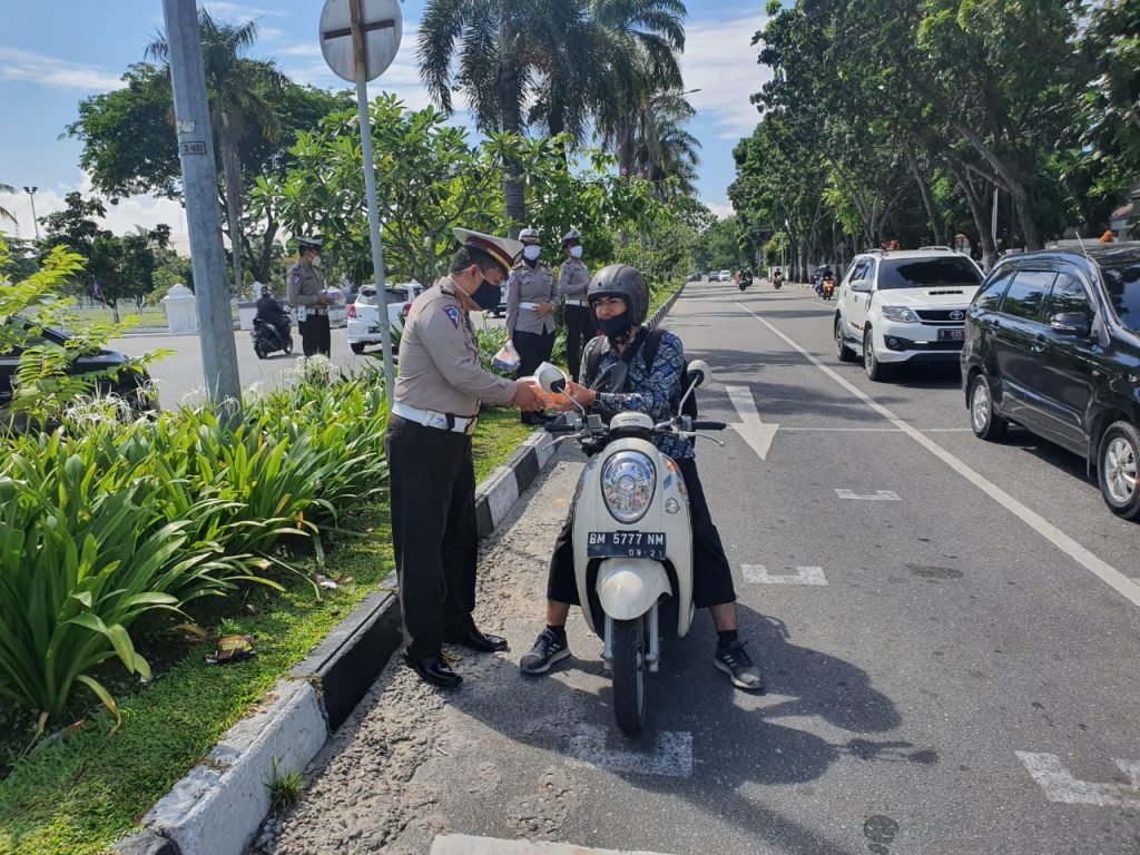 Kapolresta Pekanbaru Kombes Pol H. Nandang Mu’min Wijaya melalui Kasat Lantas Kompol Emil Eka Putra, menyampaikan Nasi Kotak tersebut diberikan sebagai apresiasi kepada pengendara yang telah tertib berlalu lintas serta protokol kesehatan.