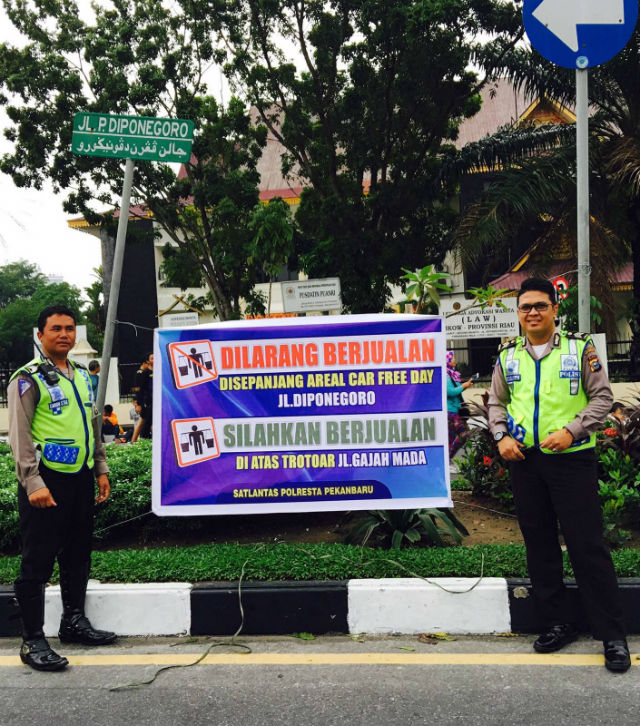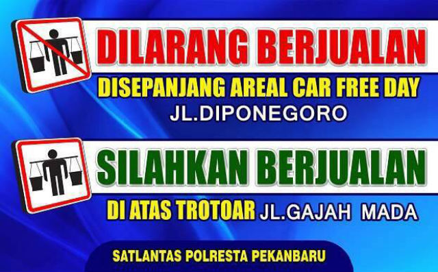 PEKANBARU,SIAGANEWS.CO- Satuan Polisi Lalu Lintas Polresta, Pekanbaru melakukan sosialisasi dan imbauan terhadap sejumlah pedagang di area Car Free Day Jalan Diponegoro dan Gajah Mada, Ahad (14/11/15) pagi.